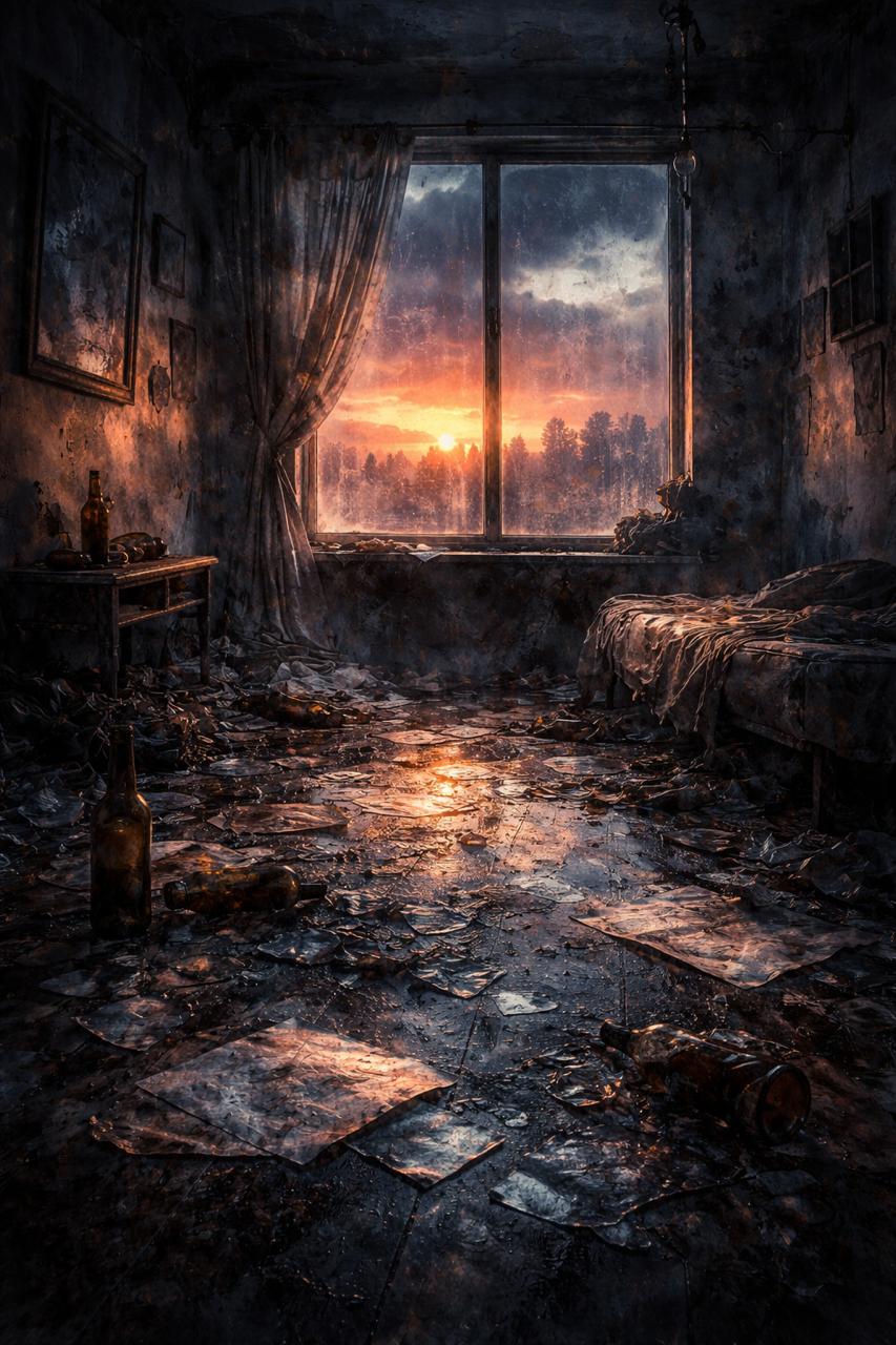 nos restos de garrafas quebradas